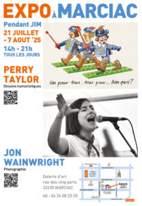 21 July – 7 August 2025 – Jazz in Marciac (32), Perry opens his pop-up gallery during the jazz festival. His 14th year! Open every day from 2pm to 9pm.